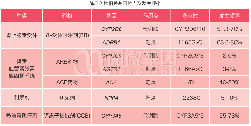 研究表明遗传因素是造成这种差异的重要因素,如编码药物代谢酶、靶蛋白、受体、转运体等基因发生了变异。不同降压药物相关基因在中国人群中的分布及突变频率不同,对抗高血压药物反应亦不同。