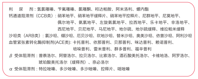 常用高血压药物分类及名称