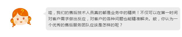 舒畅:一个好的售后服务团队和售后工作应注意或者说应具备以下几点: